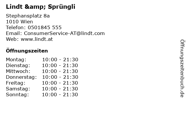 | Öffnungszeiten Lindt & Sprüngli in Wien anzeigen | |