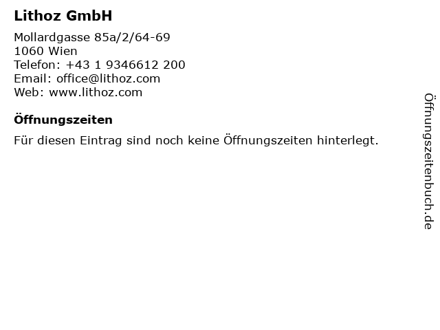 | Öffnungszeiten Lithoz GmbH in Wien anzeigen | |