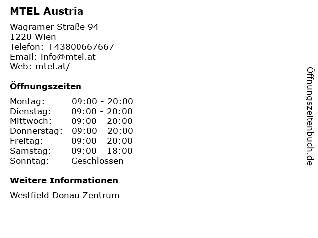 | Öffnungszeiten MTEL Austria in Wien anzeigen | |