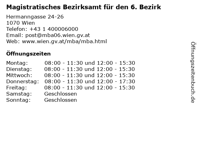 Branchen & Suchbegriffe zu Magistratisches Bezirksamt für den 6. Bezirk:6., 7., bezirk, bezirksamt, den, fundservice, handysignatur, lebensbestätigung, magistratisches, meldeservice, parkpickerl, passservice, religionsaustritt, staatsbürgerschaftsnachweis, wahlkarte, wählerverzeichnis |