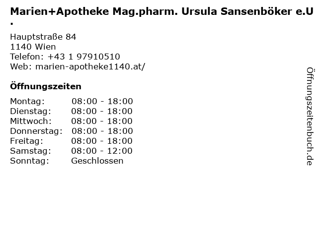 Branchen & Suchbegriffe zu Marien+Apotheke Mag.pharm. Ursula Sansenböker e.U.:e.u., mag.pharm., marien+apotheke, sansenböker, ursula |