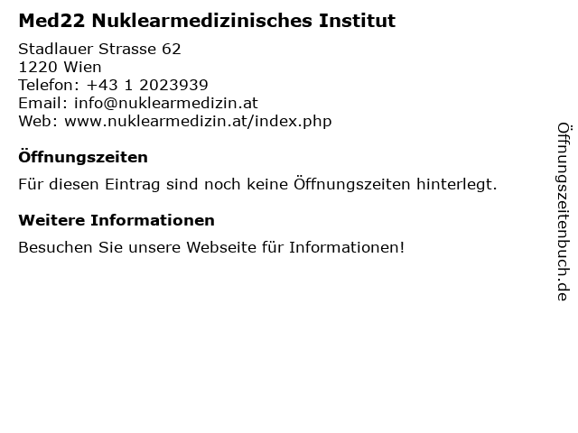 | Med22 Nuklearmedizinisches Institut anrufen | |