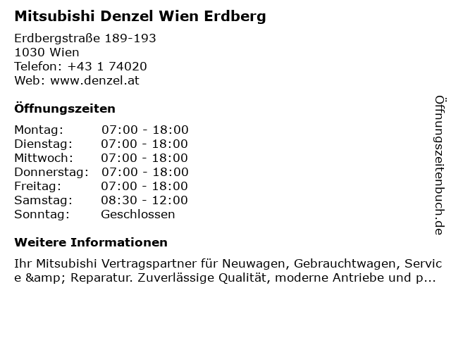 Öffnungszeiten Mitsubishi Denzel Wien Erdberg in Wien anzeigen | |