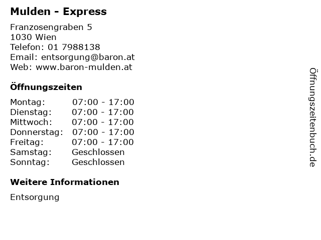 | Öffnungszeiten Mulden - Express in Wien anzeigen | |