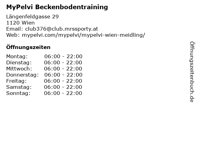 | Öffnungszeiten MyPelvi Beckenbodentraining in Wien anzeigen | |