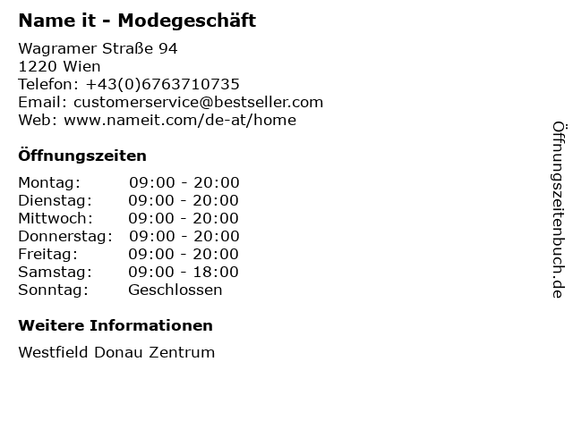 | Öffnungszeiten Name it - Modegeschäft in Wien anzeigen | |