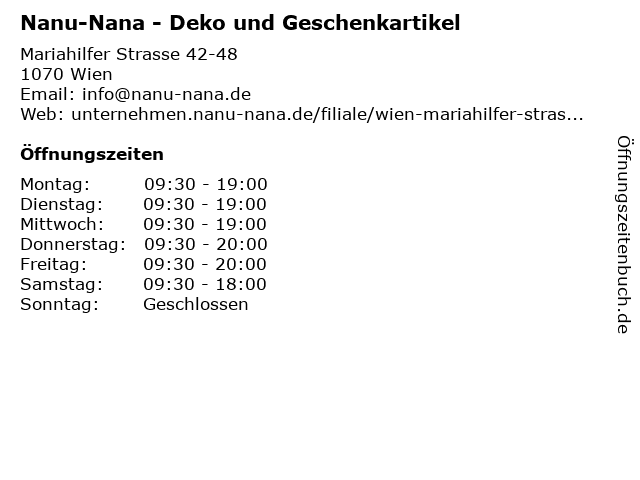 | Öffnungszeiten Nanu-Nana - Deko und Geschenkartikel in Wien anzeigen | |