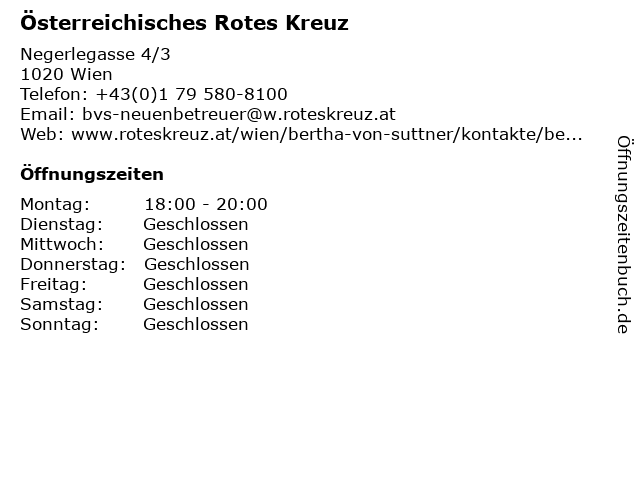 | Öffnungszeiten Österreichisches Rotes Kreuz in Wien anzeigen | |