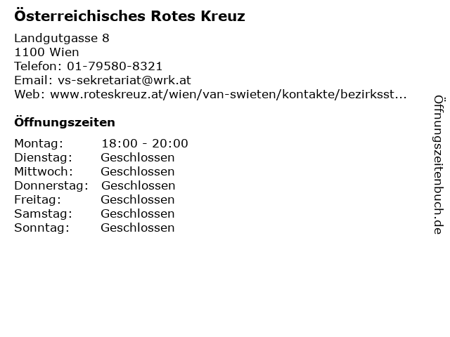 | Öffnungszeiten Österreichisches Rotes Kreuz in Wien anzeigen | |