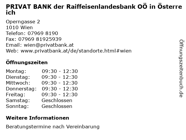 3 Diakonie Österreich - EPTS Aufbaumittelschule Diakonie (Entfernung: 0,50 km) Karlsplatz 14, 1040 Wien 5 Raiffeisenlandesbank Niederösterreich-Wien AG - (Bankomat Filiale) (Entfernung: 0,51 km) Michaelerplatz 3, 1010 Wien 6 Raiffeisenlandesbank Niederösterreich-Wien AG - Private Banking (Entfernung: 0,51 km) Michaelerplatz 3, 1010 Wien |