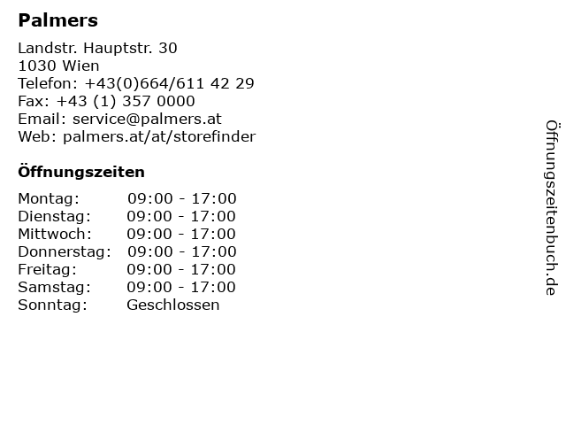 | Öffnungszeiten Palmers in Wien anzeigen | |