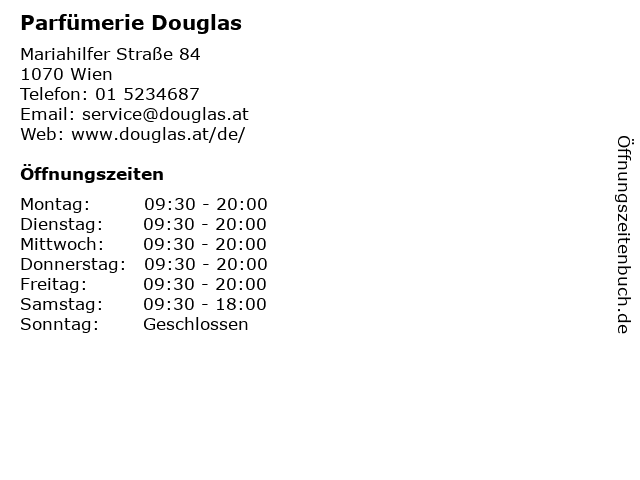 | Öffnungszeiten Parfümerie Douglas in Wien anzeigen | |