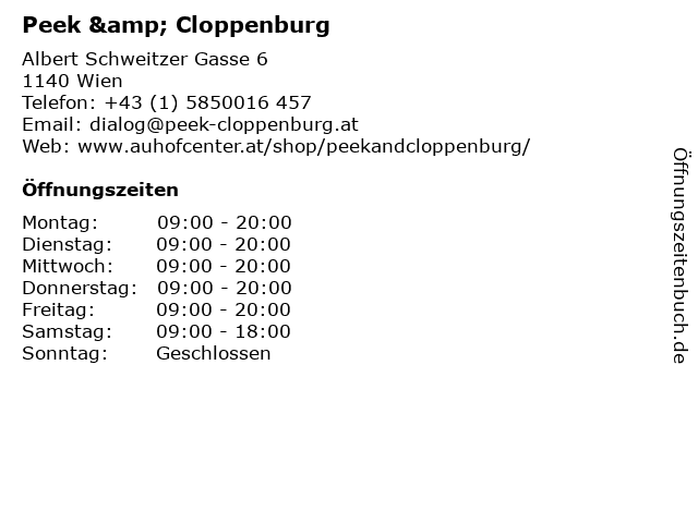 | Öffnungszeiten Peek & Cloppenburg in Wien anzeigen | |