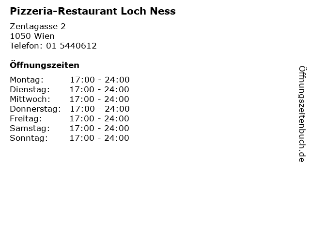 | Öffnungszeiten Pizzeria-Restaurant Loch Ness in Wien anzeigen | |