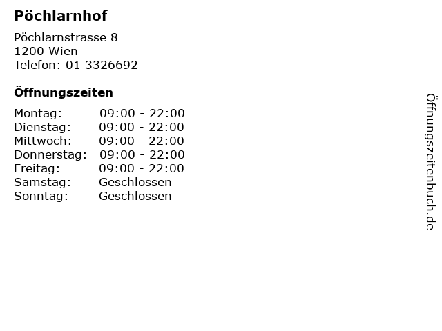 | Öffnungszeiten Pöchlarnhof in Wien anzeigen | |