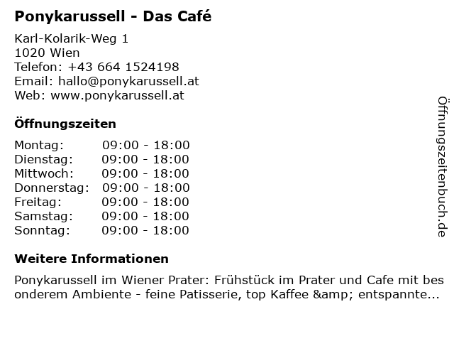 | Öffnungszeiten Ponykarussell - Das Café in Wien anzeigen | |