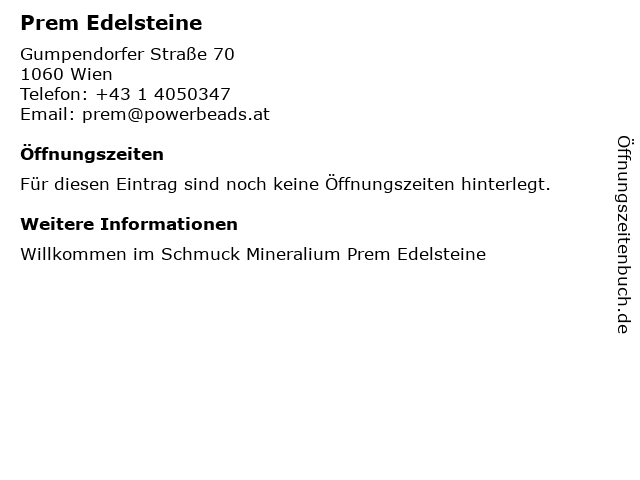 | Öffnungszeiten Prem Edelsteine in Wien anzeigen | |