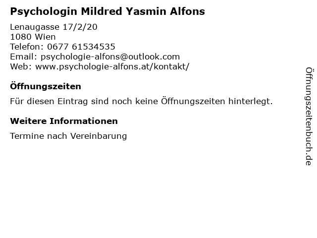 | Psychologin Mildred Yasmin Alfons anrufen | |