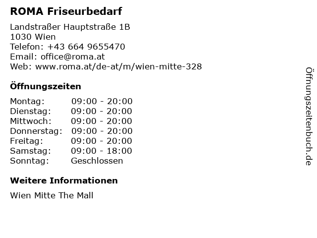 | Öffnungszeiten ROMA Friseurbedarf in Wien anzeigen | |