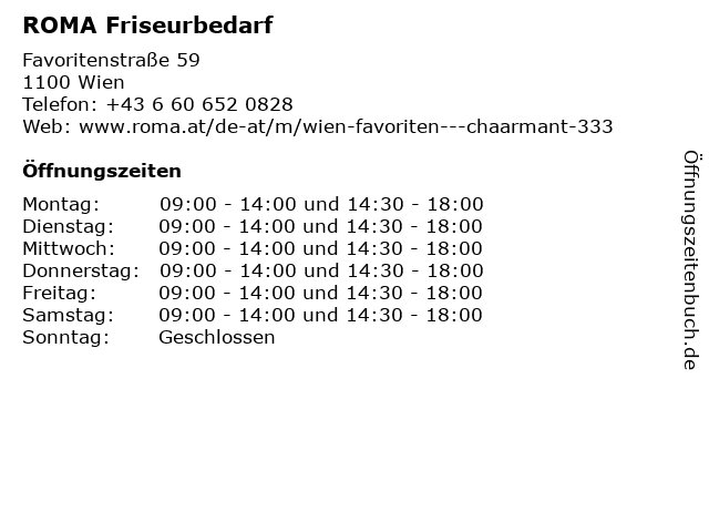 | Öffnungszeiten ROMA Friseurbedarf in Wien anzeigen | |