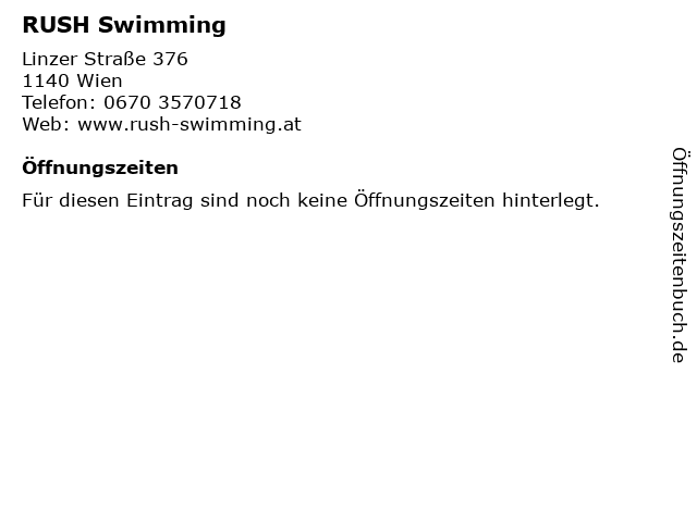 | Öffnungszeiten RUSH Swimming in Wien anzeigen | |
