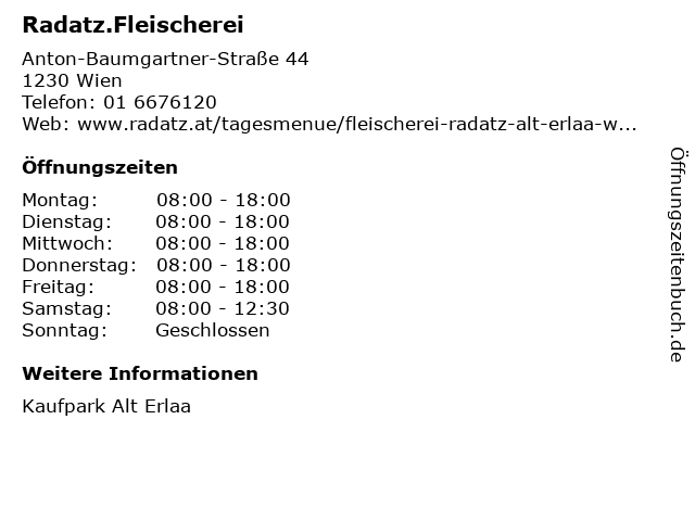 | Öffnungszeiten Radatz.Fleischerei in Wien anzeigen | |