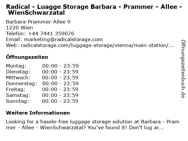 Branchen & Suchbegriffe zu Radical - Luagge Storage Barbara - Prammer - Allee - WienSchwarzatal:allee, barbara, luagge, luggage storage, luggage storage near me, prammer, radical, storage, wienschwarzatal |