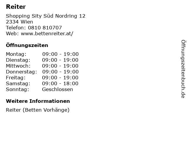 | Öffnungszeiten Reiter in Wien anzeigen | |
