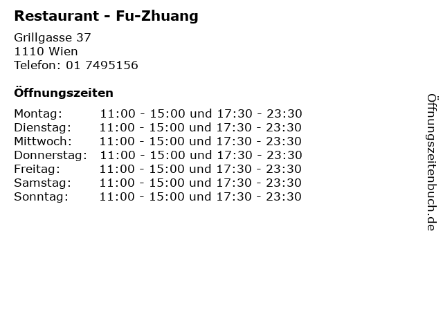 | Öffnungszeiten Restaurant - Fu-Zhuang in Wien anzeigen | |