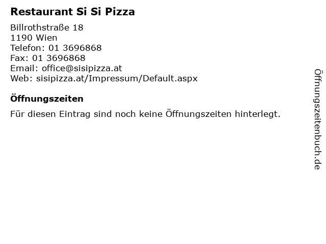 | Öffnungszeiten Restaurant Si Si Pizza in Wien anzeigen | |