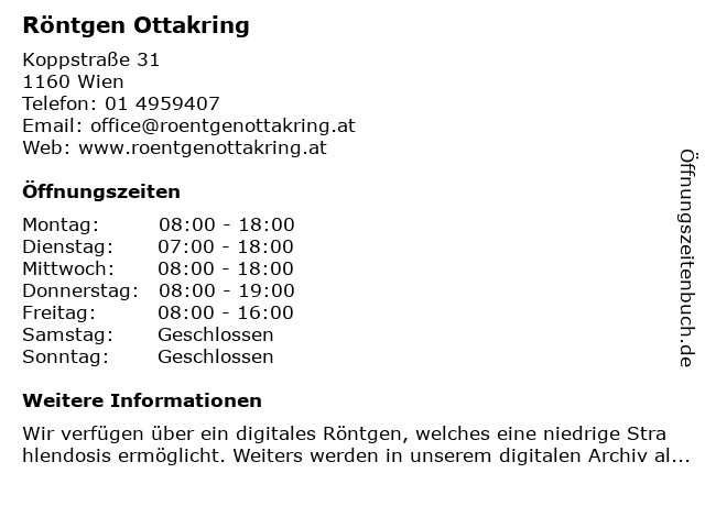| Öffnungszeiten Röntgen Ottakring in Wien anzeigen | |