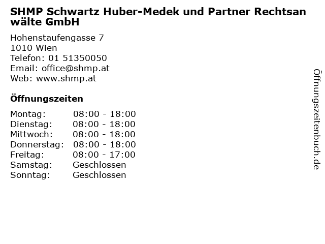 Branchen & Suchbegriffe zu SHMP Schwartz Huber-Medek und Partner Rechtsanwälte GmbH:huber, medek, partner, rechtsanwälte, schwartz, shmp |