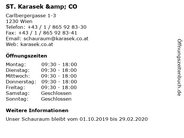 | Öffnungszeiten ST. Karasek & CO in Wien anzeigen | |