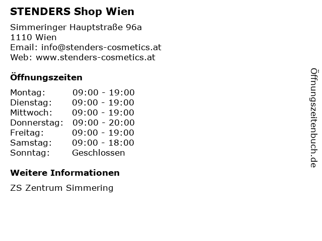 | Öffnungszeiten STENDERS Shop Wien in Wien anzeigen | |