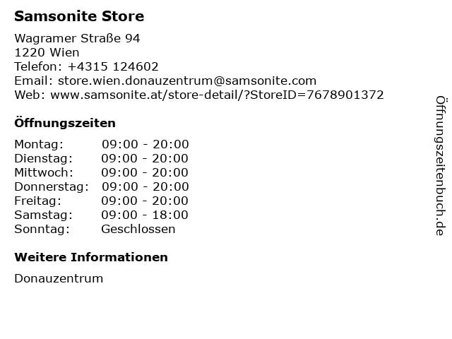 | Öffnungszeiten Samsonite Store in Wien anzeigen | |