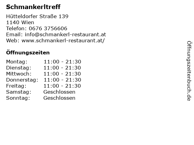 | Öffnungszeiten Schmankerltreff in Wien anzeigen | |