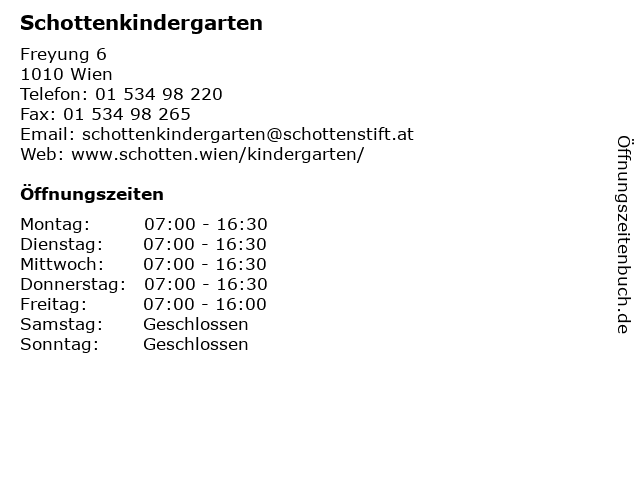 | Öffnungszeiten Schottenkindergarten in Wien anzeigen | |