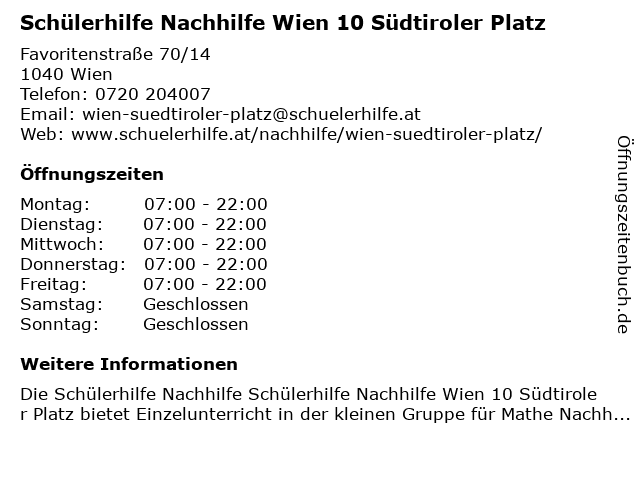 Branchen & Suchbegriffe zu Schülerhilfe Nachhilfe Wien 10 Südtiroler Platz:10, bildungszentrum, nachhilfe, platz, schülerhilfe, südtiroler, wien |