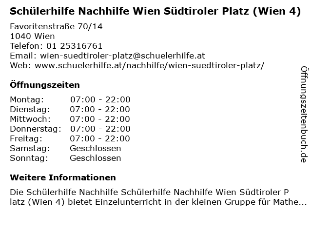 Branchen & Suchbegriffe zu Schülerhilfe Nachhilfe Wien Südtiroler Platz (Wien 4):bildungszentrum, nachhilfe, platz, schülerhilfe, südtiroler, wien |