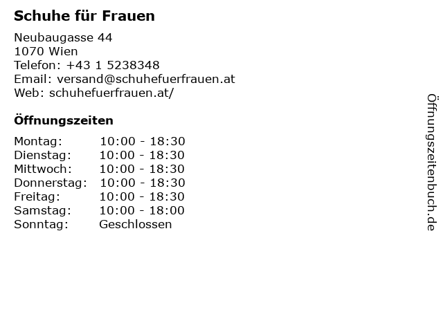 | Öffnungszeiten Schuhe für Frauen in Wien anzeigen | |