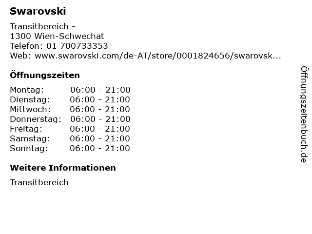 | Öffnungszeiten Swarovski in Wien-Schwechat anzeigen | |