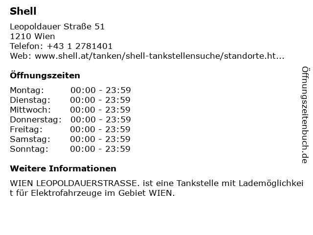 | Öffnungszeiten Shell in Wien anzeigen | |