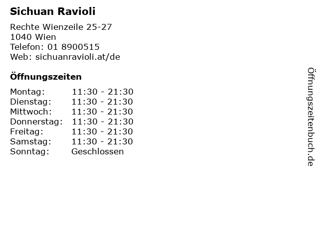 | Öffnungszeiten Sichuan Ravioli in Wien anzeigen | |