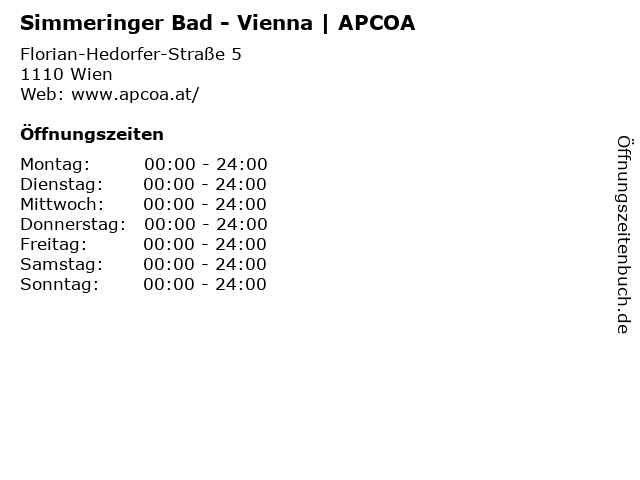| Öffnungszeiten Simmeringer Bad - Vienna | APCOA in Wien anzeigen | |
