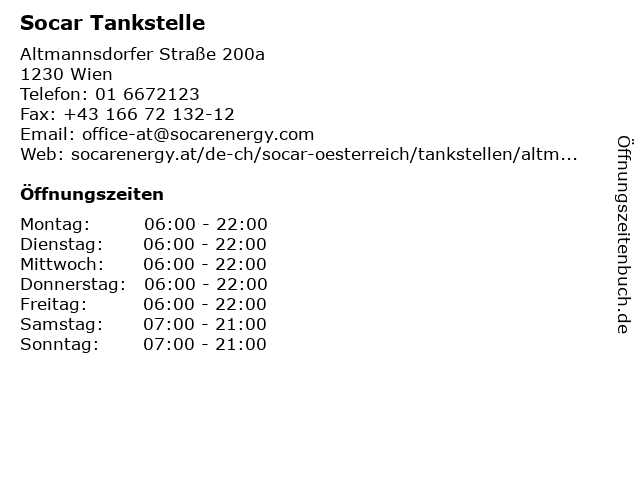 | Öffnungszeiten Socar Tankstelle in Wien anzeigen | |