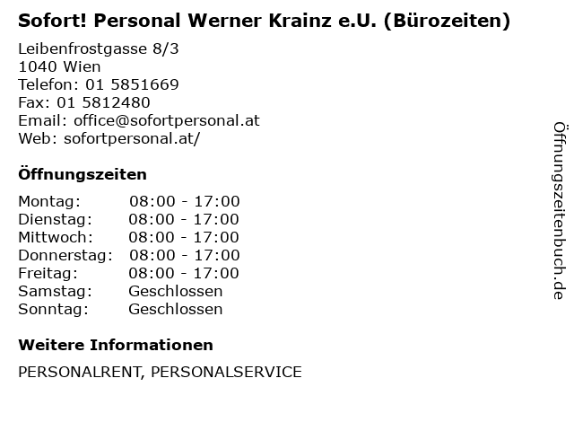 Branchen & Suchbegriffe zu Sofort! Personal Werner Krainz e.U. (Bürozeiten):bürozeiten, e.u., job börse, jobangebot, jobbörse, jobs, jobvermittlung, krainz, personal, personalberatung, personalleasing, personalrent, personalservice, recruiting, sofort!, werner |