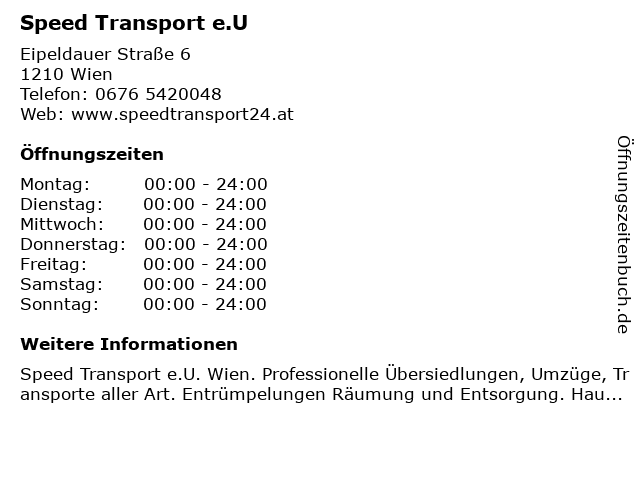 | Öffnungszeiten Speed Transport e.U in Wien anzeigen | |