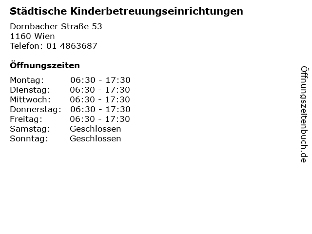 Öffnungszeiten Städtische Kinderbetreuungseinrichtungen in Wien anzeigen