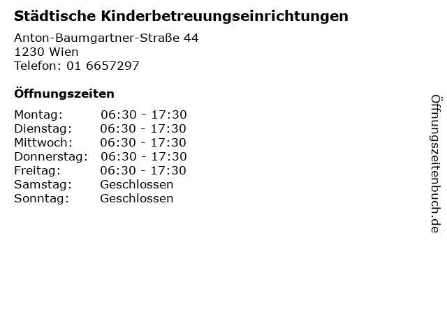 Städtische Kinderbetreuungseinrichtungen in Wien | Telefonnummer, Öffnungszeiten und Adresse