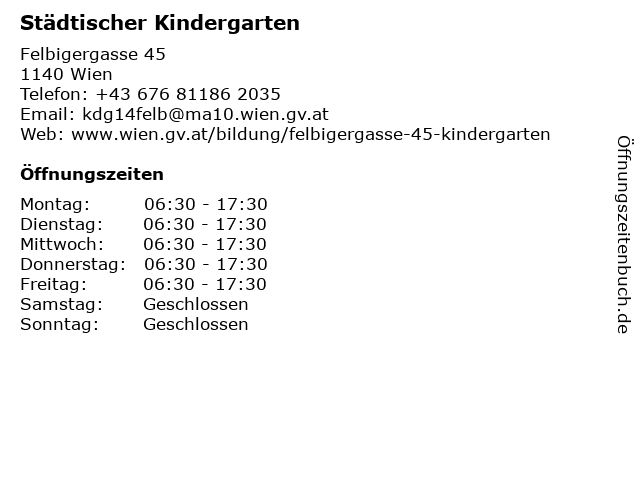 | Öffnungszeiten Städtischer Kindergarten in Wien anzeigen | |